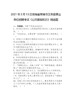 2021年3月13日湖南省常德市汉寿县事业单位招聘考试《公共基础知识》精选题.docx