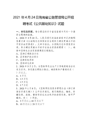 2021年4月24日海南省公路管理局公开招聘考试《公共基础知识》试题.docx