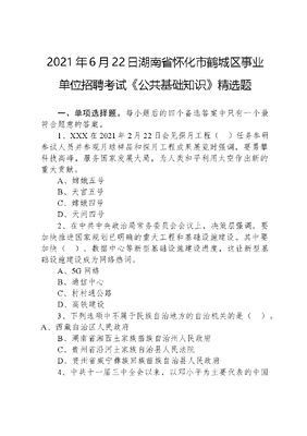 2021年6月22日湖南省怀化市鹤城区事业单位招聘考试《公共基础知识》精选题.docx