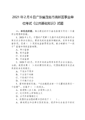 2021年2月6日广东省茂名市高新区事业单位考试《公共基础知识》试题.docx