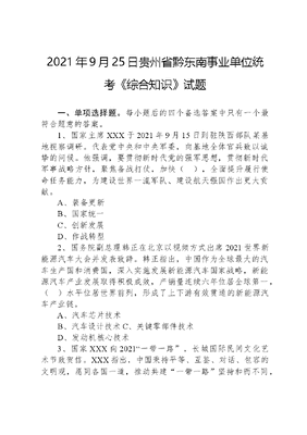 2021年9月25日贵州省黔东南事业单位统考《综合知识》试题.docx