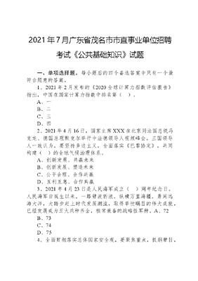 2021年7月广东省茂名市市直事业单位招聘考试《公共基础知识》试题.docx
