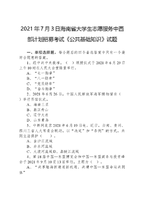 2021年7月3日海南省大学生志愿服务中西部计划招募考试《公共基础知识》试题(网友回忆版).docx