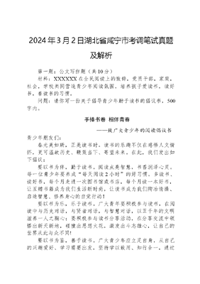 2024年3月2日湖北省咸宁市考调笔试真题及解析.docx