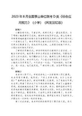 2023年8月全国事业单位联考D类《综合应用能力》(小学)(网友回忆版)+.docx