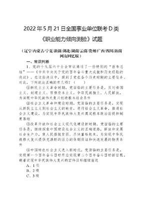 2022年5月21日全国事业单位联考D类《职业能力倾向测验》试题+.docx