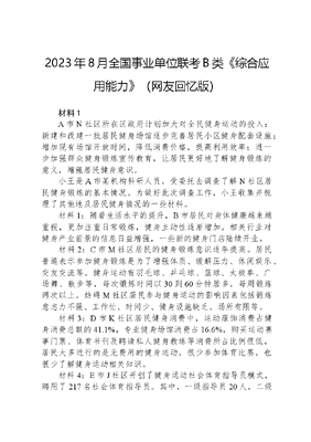 2023年8月全国事业单位联考B类《综合应用能力》(网友回忆版)+.docx