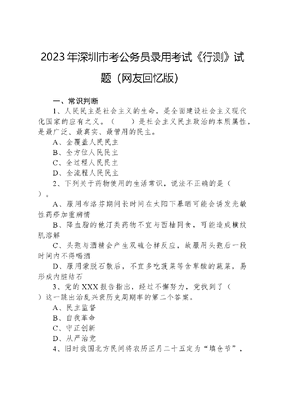 2023年深圳市考公务员录用考试《行测》试题(网友回忆版)+.docx