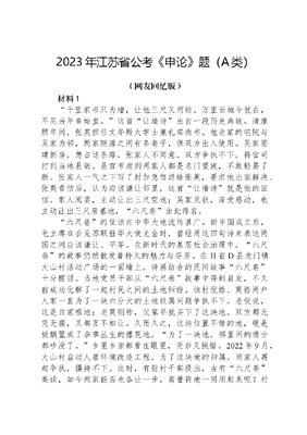 2023年江苏省公考《申论》题(A类)(网友回忆版).docx