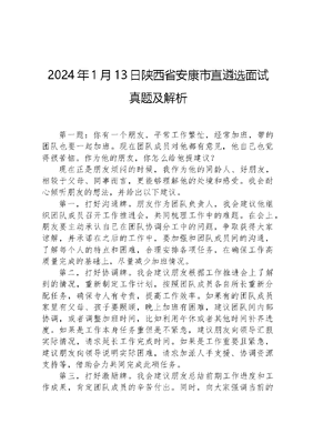 2024年1月13日陕西省安康市直遴选面试真题及解析.docx