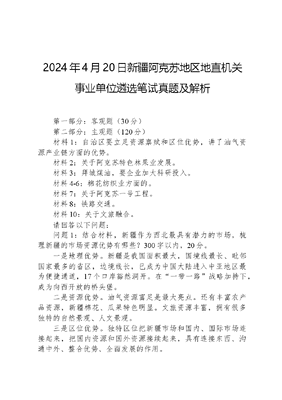 2024年4月20日新疆阿克苏地区地直机关事业单位遴选笔试真题及解析.docx
