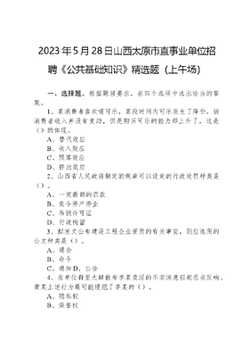 2023年5月28日山西太原市直事业单位招聘《公共基础知识》精选题(上午场).docx