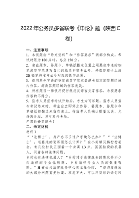 2022年公务员多省联考《申论》题(陕西C卷).docx