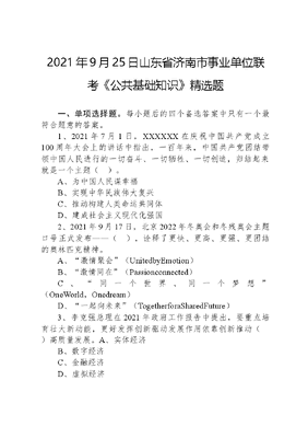 2021年9月25日山东省济南市事业单位联考《公共基础知识》精选题.docx
