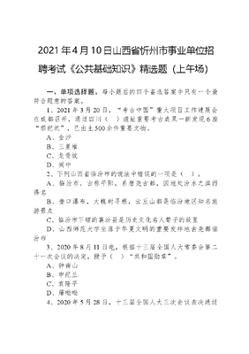 2021年4月10日山西省忻州市事业单位招聘考试《公共基础知识》精选题(上午场).docx