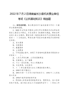 2022年7月2日湖南省长沙县机关事业单位考试《公共基础知识》精选题.docx
