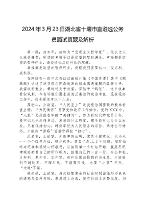 2024年3月23日湖北省十堰市直遴选公务员面试真题及解析.docx