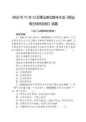 2022年11月12日事业单位联考B类《职业能力倾向测验》试题+.docx