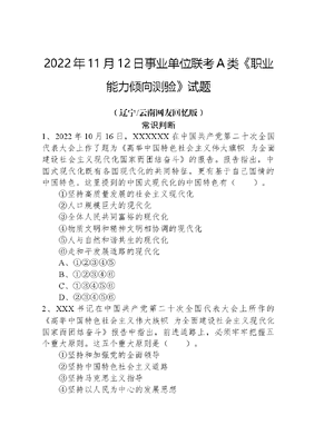 2022年11月12日事业单位联考A类《职业能力倾向测验》试题+.docx