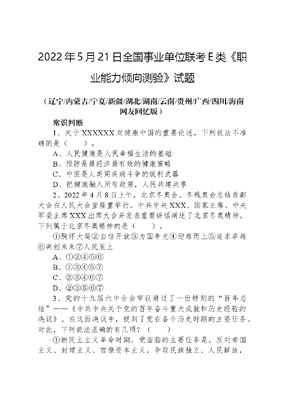 2022年5月21日全国事业单位联考E类《职业能力倾向测验》试题+.docx