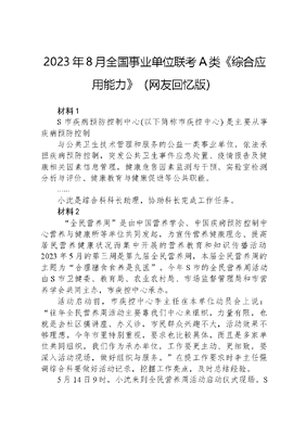 2023年8月全国事业单位联考A类《综合应用能力》(网友回忆版)+.docx