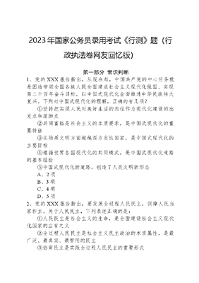 2023年国家公务员录用考试《行测》题(行政执法卷网友回忆版)+.docx