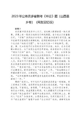 2023年公务员多省联考《申论》题(山西县乡卷)(网友回忆版).docx
