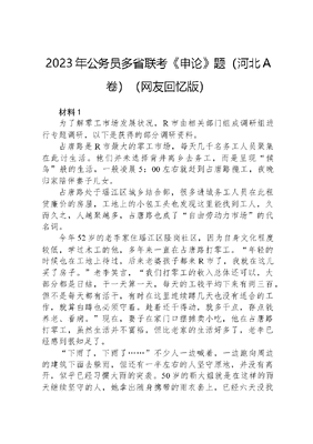 2023年公务员多省联考《申论》题(河北A卷)(网友回忆版).docx