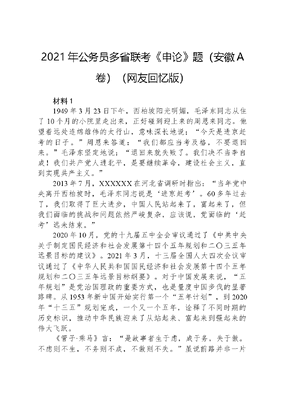 2021年公务员多省联考《申论》题(安徽A卷)(网友回忆版.docx