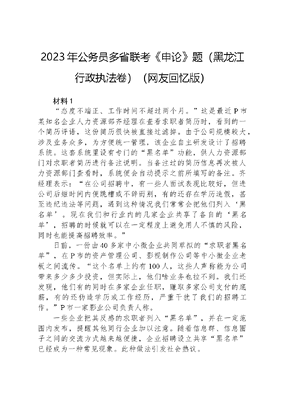 2023年公务员多省联考《申论》题(黑龙江行政执法卷)(网友回忆版).docx