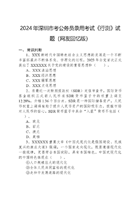 2024年深圳市考公务员录用考试《行测》试题(网友回忆版).docx