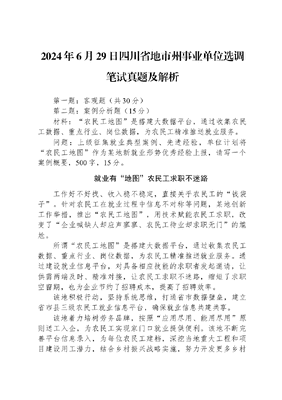 2024年6月29日四川省地市州事业单位选调笔试真题及解析.docx