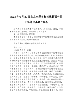 2023年6月20日北京市税务机关选拔副科级干部笔试真题及解析.docx
