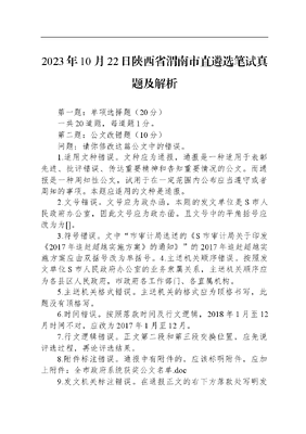 2023年10月22日陕西省渭南市直遴选笔试真题及解析.docx