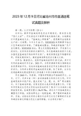 2023年12月9日河北省沧州市市直遴选笔试真题及解析.docx