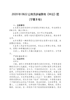2020年0822公务员多省联考《申论》题(宁夏B卷).docx