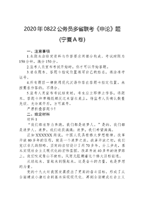 2020年0822公务员多省联考《申论》题(宁夏A卷).docx