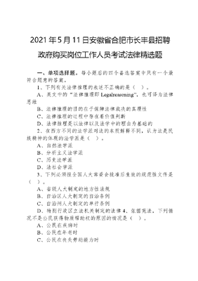 2021年5月11日安徽省合肥市长丰县招聘政府购买岗位工作人员考试法律精选题.docx