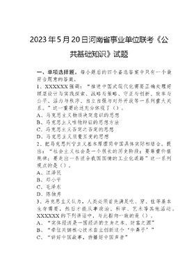 2023年5月20日河南省事业单位联考《公共基础知识》试题.docx