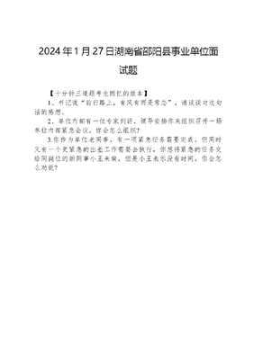 2024年1月27日湖南省邵阳县事业单位面试题.docx