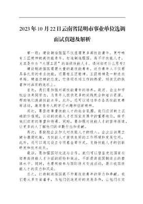 2023年10月22日云南省昆明市事业单位选调面试真题及解析.docx
