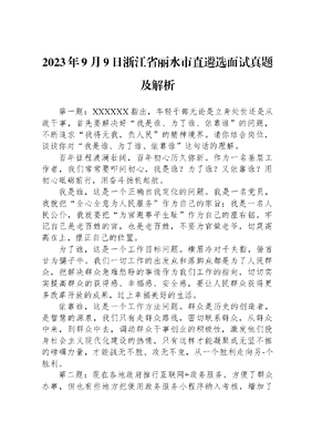 2023年9月9日浙江省丽水市直遴选面试真题及解析.docx