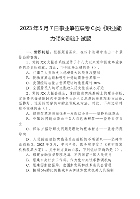 2023年5月7日事业单位联考C类《职业能力倾向测验》试题.docx