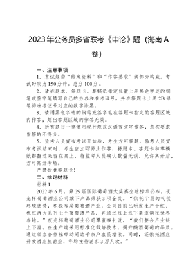 2023年公务员多省联考《申论》题(海南A卷).docx