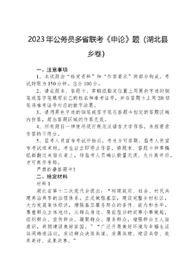 2023年公务员多省联考《申论》题(湖北县乡卷).docx