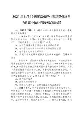 2021年6月19日湖南省怀化市新晃侗族自治县事业单位招聘考试精选题.docx
