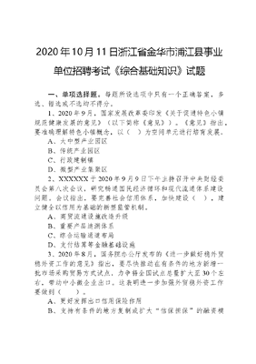 2020年10月11日浙江省金华市浦江县事业单位招聘考试+《综合基础知识》试题.docx