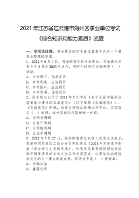 2021年江苏省连云港市海州区事业单位考试《综合知识和能力素质》试题.docx