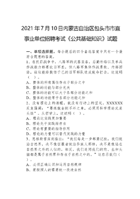 2021年7月10日内蒙古自治区包头市市直事业单位招聘考试《公共基础知识》试题.docx