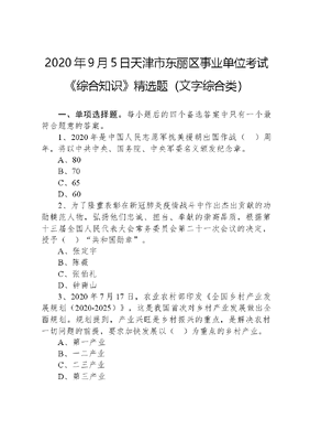 2020年9月5日天津市东丽区事业单位考试《综合知识》精选题(文字综合类).docx